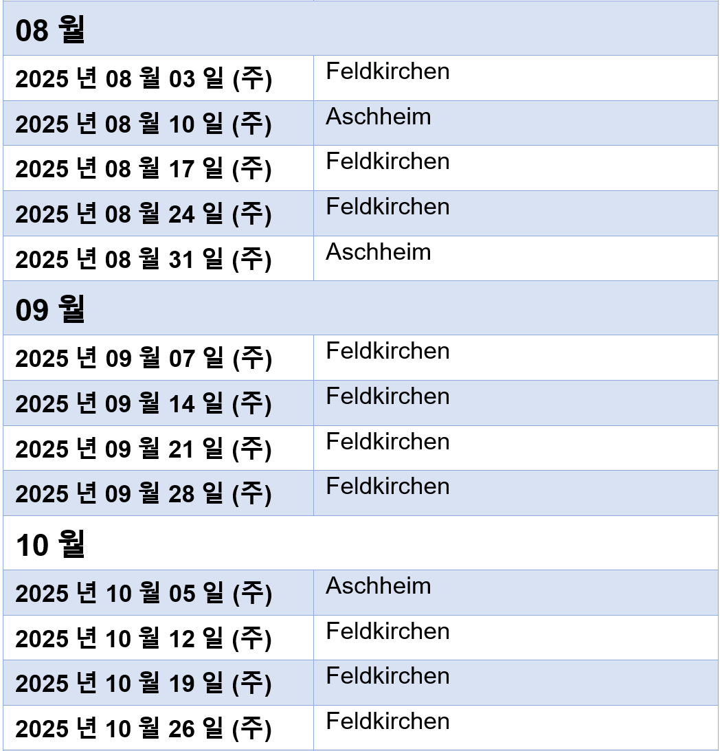 - 오시는 길: S bahn(S2) - Feldkirchen bahnhof 에서 걸어서 4-5분 거리 (350meter)